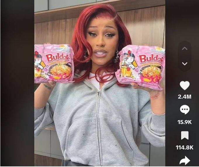 그리고 불닭볶음면의 인기의 요인을 분석했는데 유튜브 인플루언서들이 '불닭볶음면 챌린지'를 통해 챌린지 영상 등이 SNS를 통해 확산되면서 전세계적으로 인기를 끌게 됐다고 했습니다. 더군다나 최근 미국의 유명 가수이자 래퍼 카디 비(Cardi B)가 집에서 30분 정도 떨어진 마트에 직접 운전해서 불닭볶음면을 구입한다고 해서 더 화제가 됐는데요.