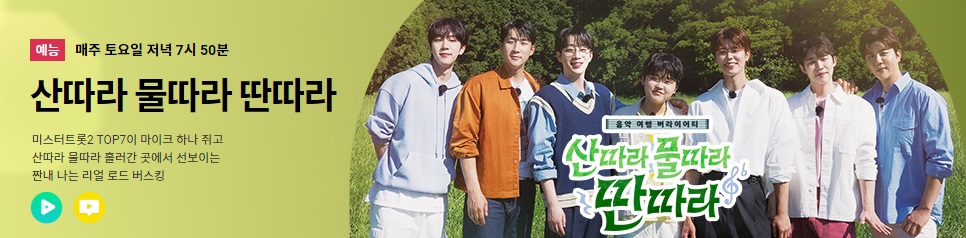 TV조선 '산따라 물따라 딴따라' 미스터트롯2 TOP7 단독 예능 출격! 시간, 장소, 출연진, 재방송, 시청률 알려드려요.